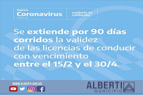 El organismo determinó una prórroga de 90 días corridos para aquellas licencias cuyos vencimientos se encuentran en el período entre el 15 de febrero al 30 de abril de 2020.