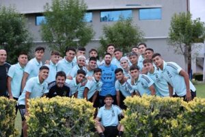 Los integrantes de la selección sub-17 estuvieron mirando la práctica de los Campeones del Mundo.