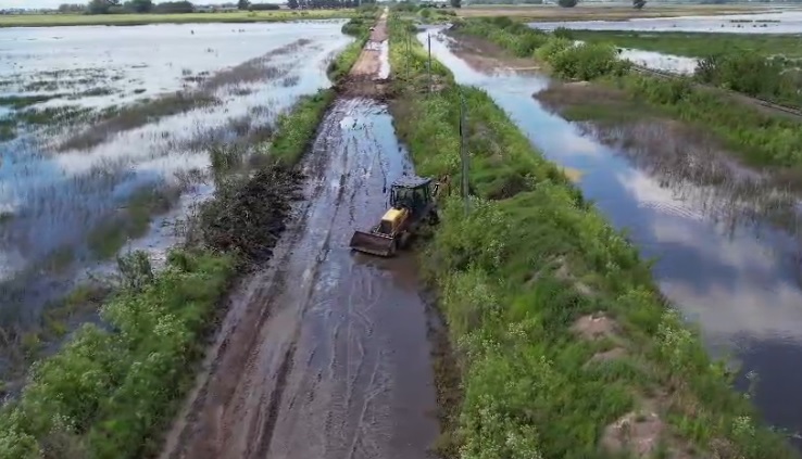 En la zona rural hay algunos cortes de caminos, mucha acumulación de agua por la sumatoria de lluvias, y el crecimiento del caudal del Río Salado que desbordó hacia el camino real que conecta Alberti con Mechita, a la altura del puente que se conoce como de Larrea.