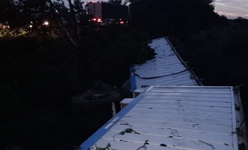 De acuerdo con la información oficial, se trató de un camión Ford Cargo 1722, color blanco, dominio DRZ-216, que remolcaba dos tolvas marca Vulcano (patentes FIU-410 y FIU-409) cargadas con soja. Por causas que aún se tratan de establecer, el conductor —único ocupante del rodado— perdió el control, cruzó de carril y terminó volcando, provocando el fatal desenlace.
