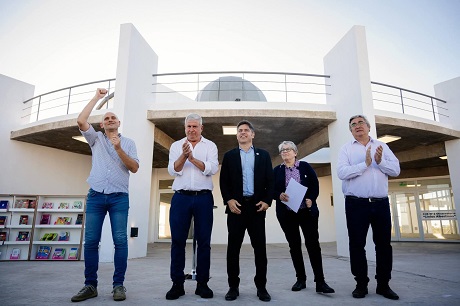 En el marco del Día del Científico y la Científica, el gobernador Axel Kicillof encabezó la inauguración de un observatorio astronómico en el nuevo Centro de Capacitación, Investigación e Información Educativa (CIIE N°2) del municipio de Alberti. Fue junto a la directora general de Cultura y Educación, Flavia Terigi; el intendente local, Jorge Gaute; el senador provincial Germán Lago; y el director del observatorio, Marcos Santarrosa.