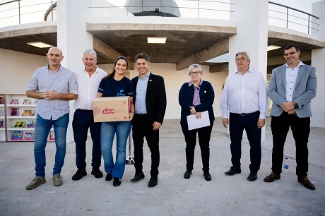 Asimismo, las autoridades entregaron 28 netbooks del programa “Conectar Igualdad Bonaerense” y colecciones “Aulas Bonaerenses Científicas”, que incluyen 66 libros de 34 editoriales para acercar la mirada científica a estudiantes secundarios y docentes en formación.